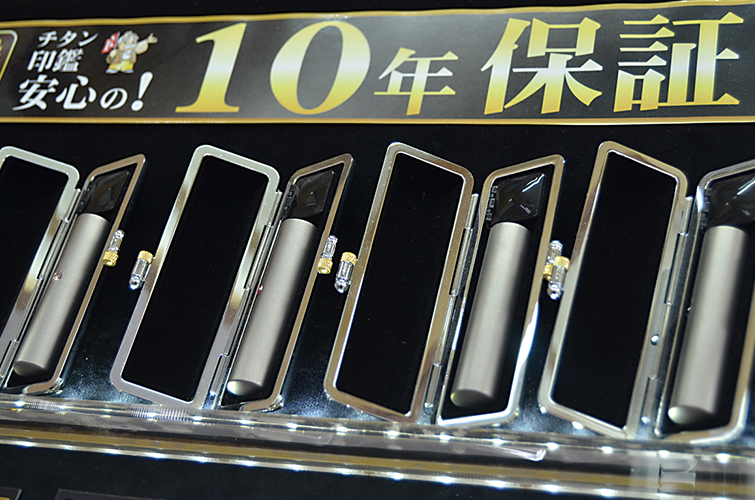 印鑑の専門店として「チタン印鑑」をイチ押し。耐久性や耐摩耗性に優れたチタンの特性を生かし、しっかりと管理すれば、半永久的に使用可能。万が一、破損したり欠けたりした場合も10年保証の安心サービスが付く。
