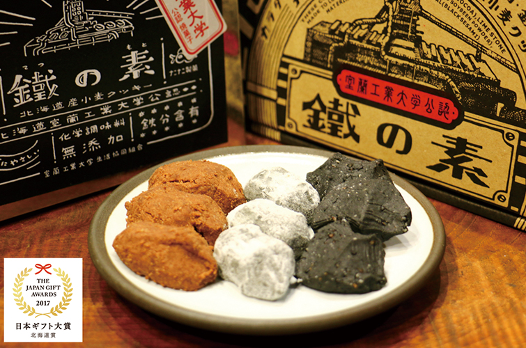 鉄のマチ室蘭をアピールする菓子として、室蘭工業大学公認「鐵の素」クッキーをイチ押しする。鉄分を豊富に含んだ3種類の味があり、食べやすいサイズと軽い口溶けが人気だ。