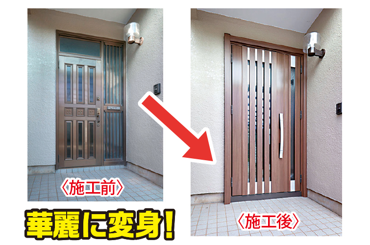 住宅設備機器の最大手「LIXIL」の商品を用いた玄関ドアの交換リフォームを提案する。住宅の中で、最も熱が逃げやすいのは玄関などの開口部で、新築の住宅にも使用される最新の高断熱仕様ドアで性能アップと、家の顔ともいえる玄関を華麗に変身させる。