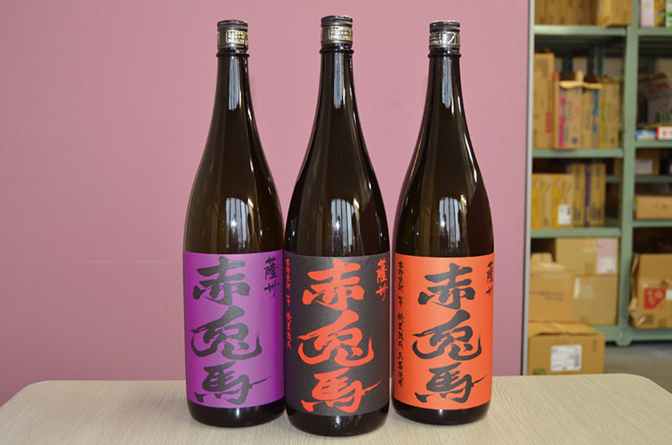 お薦めは芋焼酎「赤兎馬」。製造元の鹿児島県・濱田酒造の正規代理店で、希少な種類の商品も数多く取り揃えている。
